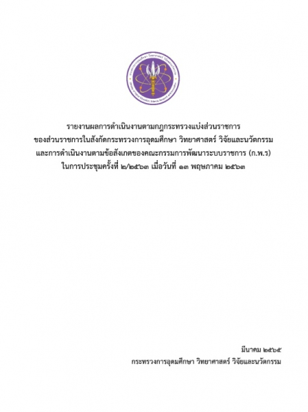 รายงานผลการดำเนินงานตามกฎกระทรวงแบ่งส่วนราชการของส่วนราชการในสังกัด อว.