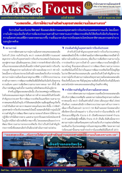 ข้อมูลโดย : กองความมั่นคงทางทะเล สำนักงานสภาความมั่นคงเเห่งชาติ