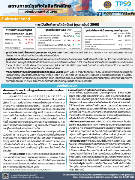 สถานการณ์ธุรกิจโลจิสติกส์ไทย ฉบับเดือนกุมภาพันธ์ 2568 สำนักงานนโยบายเเละยุทธศาสตร์การค้า