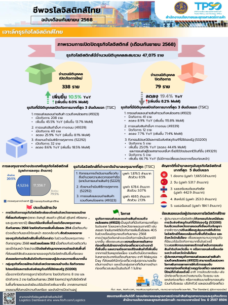 ข้อมูลสถานการณ์ธุรกิจโลจิสติกส์ไทย ฉบับเดือนกันยายน 2568