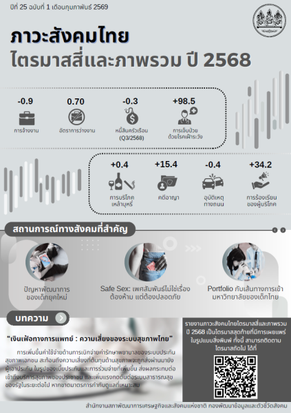 รายงานภาวะสังคมไทยไตรมาสสี่ ปี 2568 ปีที่ 5 ฉบับที่ 1 เดือนกุมภาพันธ์ 2569 สำนักงานสภาพัฒนาการเศรษฐกิจและสังคมแห่งชาติ