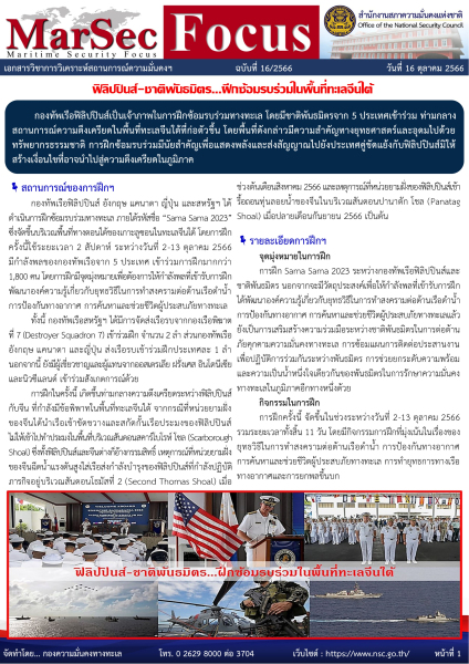ข้อมูลโดย : กองความมั่นคงทางทะเล สำนักงานสภาความมั่นคงเเห่งชาติ