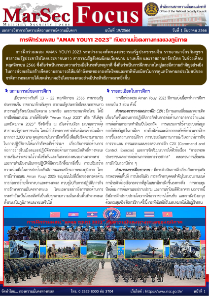 เอกสารวิชาการวิเคราะห์สถานการณ์ความมั่นคงฯ ฉบับที่ 19/2566 (วันที่ 1 ธันวาคม 2566)