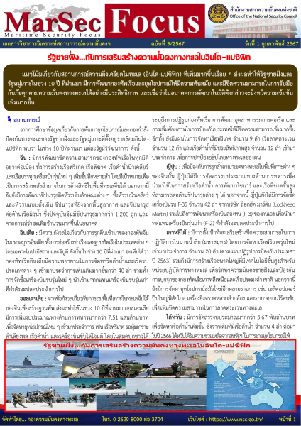 เอกสารวิชาการวิเคราะห์สถานการณ์ความมั่นคงทางทะเล ฉบับที่ 3/2567 สำนักงานสภาความมั่นคงแห่งชาติ (26 มกราคม 2567)