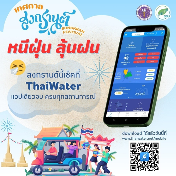 ในหลายพื้นที่ยังต้องเฝ้าระวัง ฝุ่น PM 2.5 และหลายพื้นที่ยังมีโอกาสพบฝนตกอยู่ในช่วงนี้ เทศกาลสงกรานต์สามารถวางแผนการเดินทางกลับบ้าน หรือท่องเที่ยวในวันหยุดยาวได้ โดยเช็ค "หนีฝุ่น ลุ้นฝน" กับ ThaiWater Mobile Application จาก สสน. กระทรวงการอุดมศึกษา วิทยาศาสตร์ วิจัยและนวัตกรรม