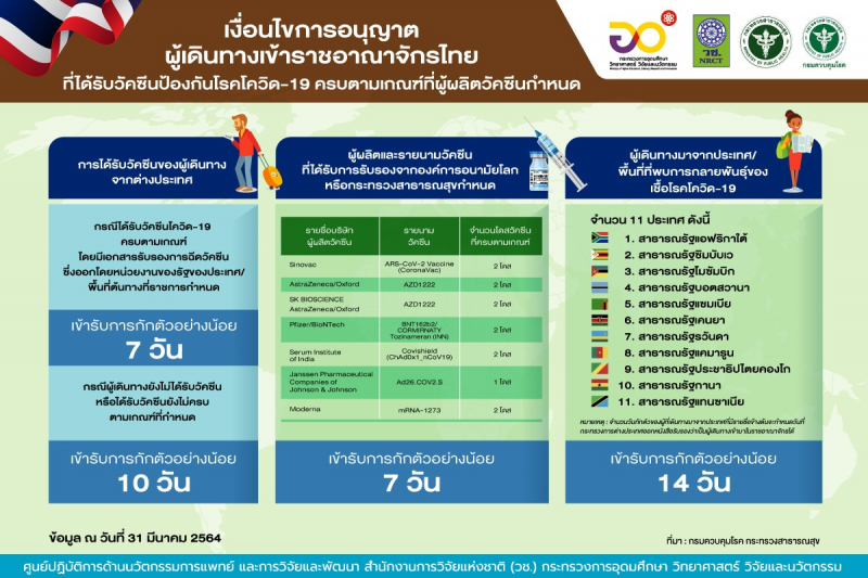 เงื่อนไขการอนุญาตผู้เดินทางเข้าราชอาณาจักรไทยที่ได้รับวัคซีนป้องกันโรคโควิด-19 ครบตามเกณฑ์ที่ผู้ผลิตวัคซีนกำหนด
