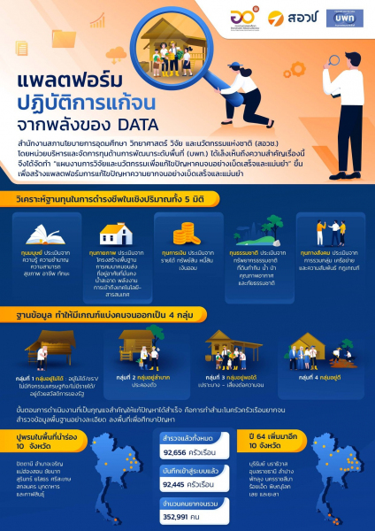 จึงได้จัดทำ “แผนงานการวิจัยและนวัตกรรมเพื่อแก้ไขปัญหาคนจนอย่างเบ็ดเสร็จและแม่นยำ” ขึ้นเพื่อสร้างแพลตฟอร์มการแก้ไขปัญหาความยากจนอย่างเบ็ดเสร็จและแม่นยำ (Personalize poverty alleviation: PPA) มีเป้าหมายเพื่อสร้างฐานข้อมูล ระบบและกลไกการแก้ไขปัญหาความยากจนด้วยการมีส่วนร่วมของทุกภาคส่วนรวมถึงการใช้ความรู้และเทคโนโลยีจากงานวิจัยและนวัตกรรมของกระทรวงการอุดมศึกษา วิทยาศาสตร์ วิจัยและนวัตกรรมมาแก้ไขปัญหาความยากจนอย่างตรงกลุ่มเป้าหมาย