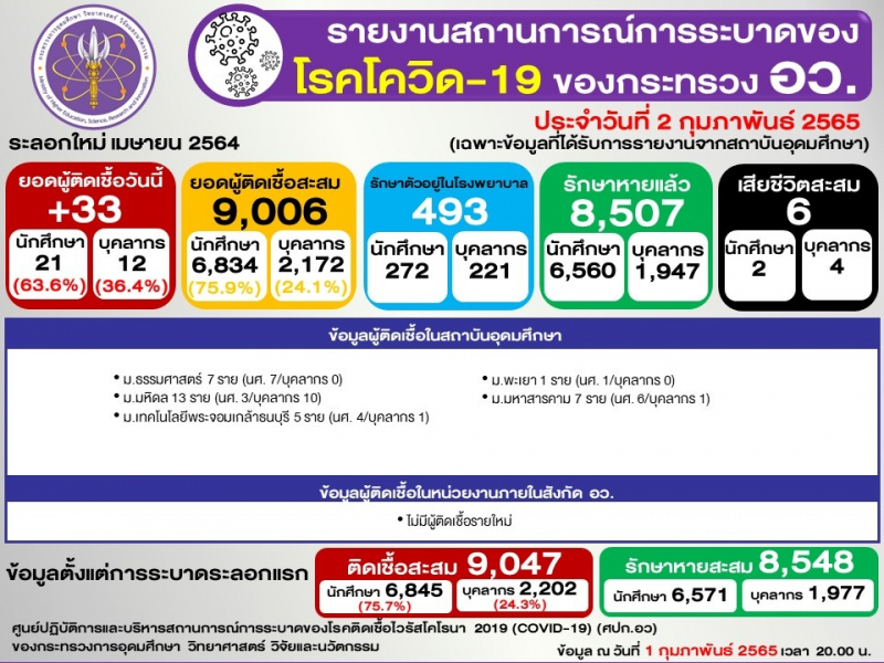 (ข้อมูล ณ 1 กุมภาพันธ์ 2565 เวลา 20.00)