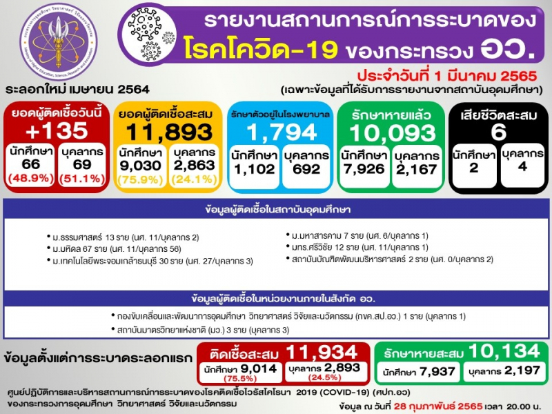 (ข้อมูล ณ 28 กุมภาพันธ์ 2565 เวลา 20.00