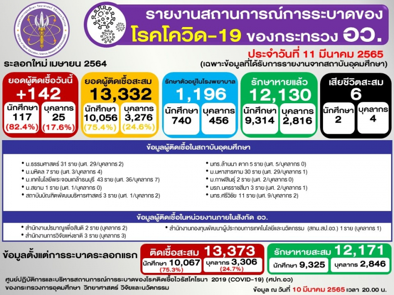 (ข้อมูล ณ 10 มีนาคม 2565 เวลา 20.00)