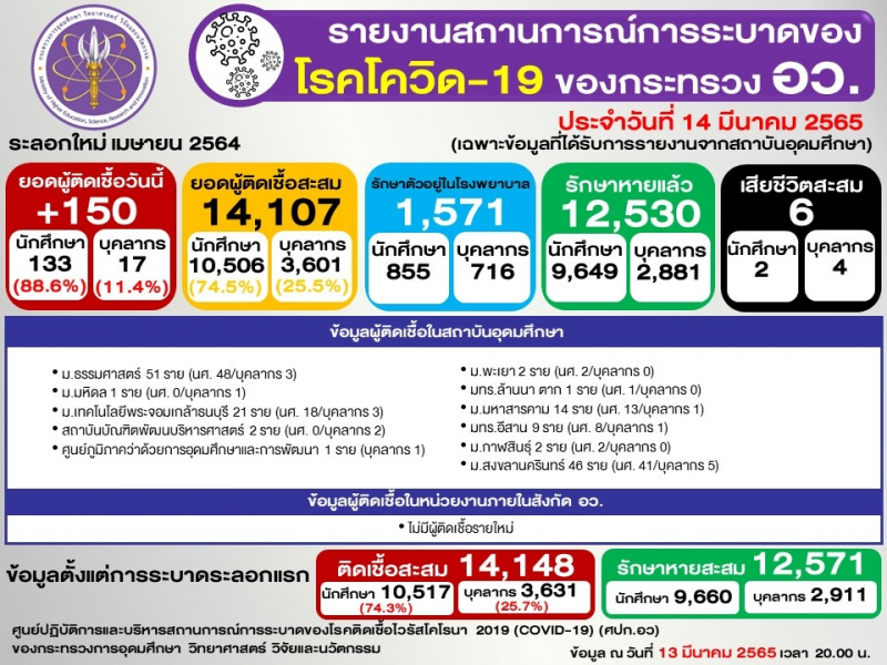 (ข้อมูล ณ 13 มีนาคม 2565 เวลา 20.00)