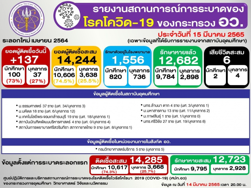 (ข้อมูล ณ 14 มีนาคม 2565 เวลา 20.00)