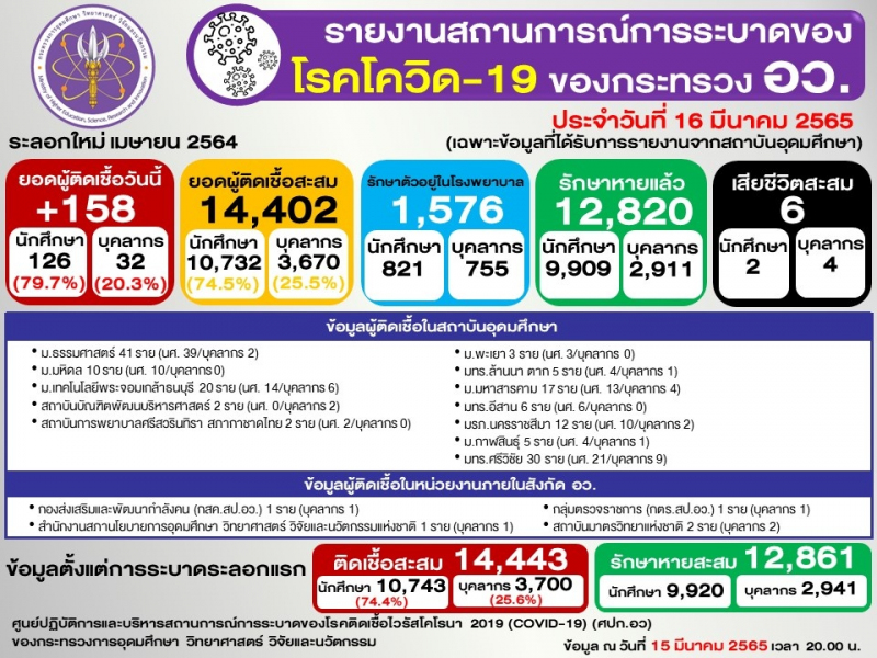 (ข้อมูล ณ 15 มีนาคม 2565 เวลา 20.00)