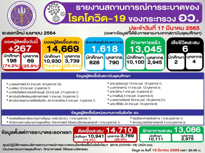 (ข้อมูล ณ 16 มีนาคม 2565 เวลา 20.00)