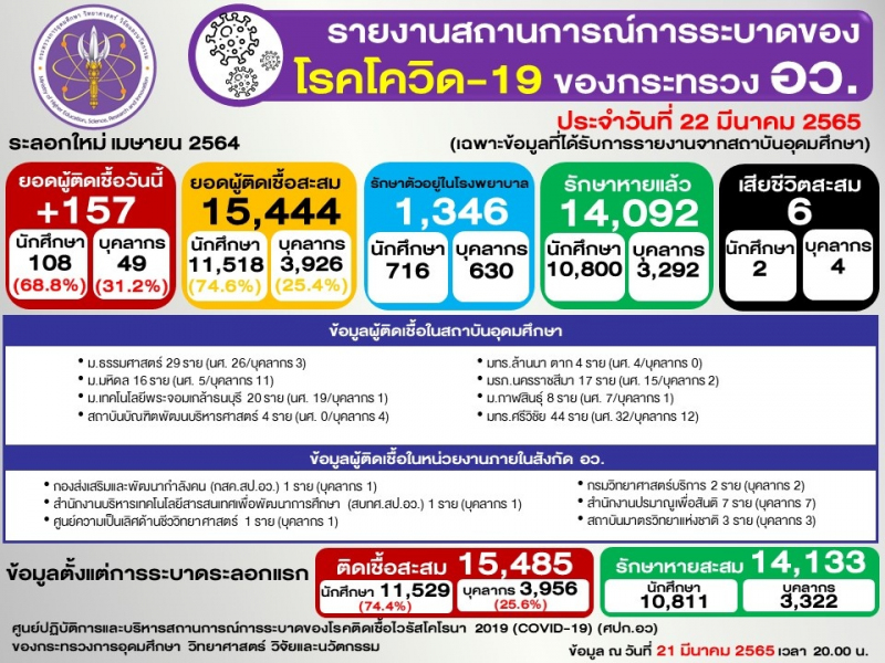 (ข้อมูล ณ 21 มีนาคม 2565 เวลา 20.00)