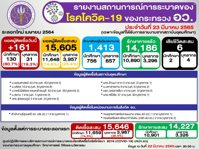 (ข้อมูล ณ 22 มีนาคม 2565 เวลา 20.00)