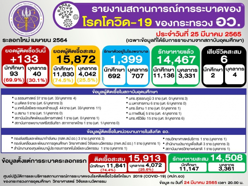 (ข้อมูล ณ 24 มีนาคม 2565 เวลา 20.00)