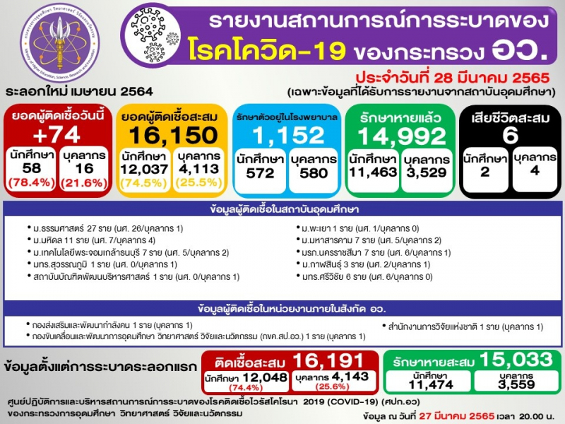 (ข้อมูล ณ 27 มีนาคม 2565 เวลา 20.00)