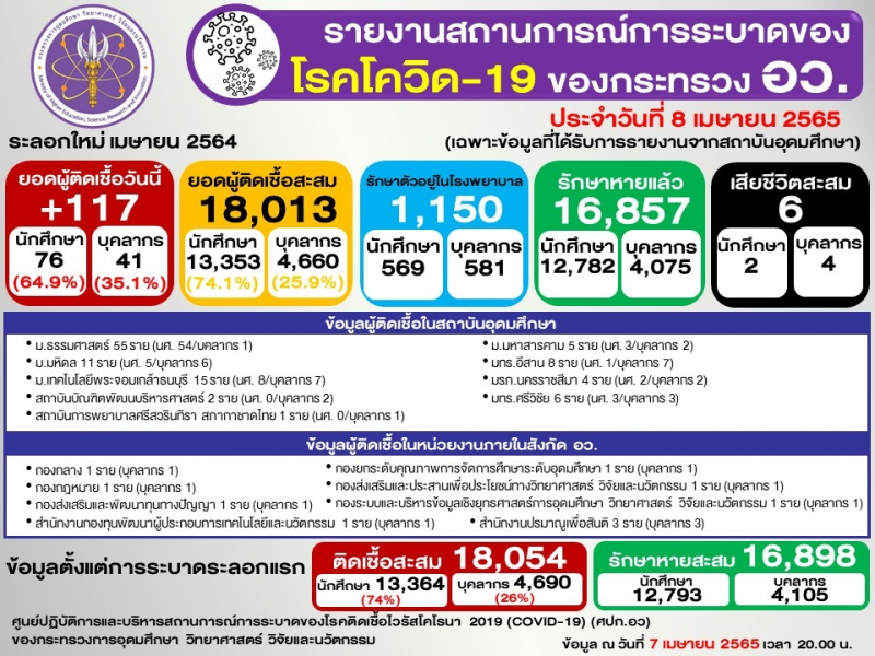(ข้อมูล ณ 7 เมษายน 2565 เวลา 20.00)