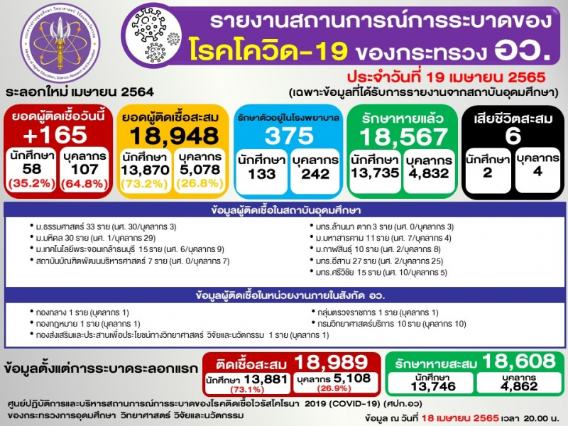 (ข้อมูล ณ 18 เมษายน 2565 เวลา 20.00)