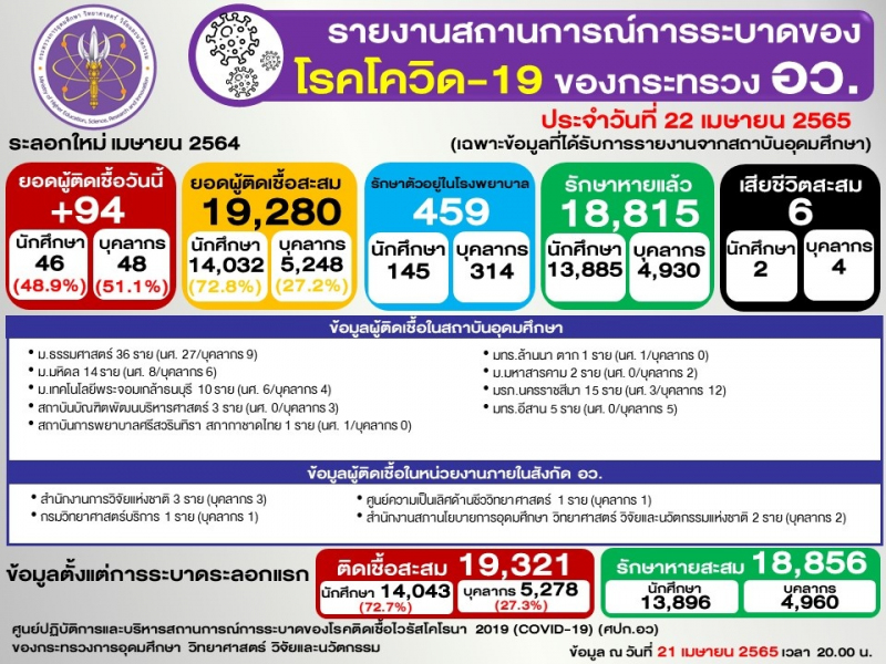 (ข้อมูล ณ 21 เมษายน 2565 เวลา 20.00)