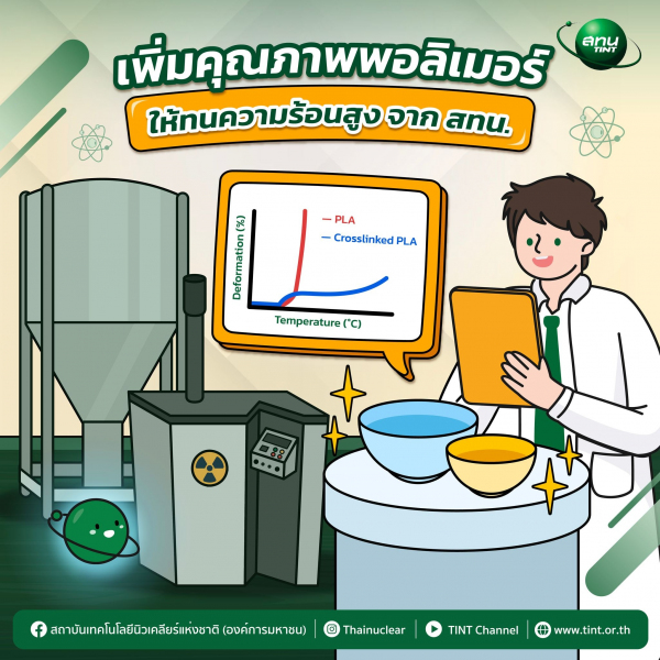 ดังนั้นบริษัทใหญ่ๆ หลายบริษัทจึงได้หันมามองหาการผลิตภาชนะบรรจุที่สามารถย่อยสลายได้ง่าย ในเวลาอันรวดเร็ว พร้อมทั้งยังสามารถทนความร้อนได้และมีความคงทนมากพอในการใช้บรรจุทางสถาบันเทคโนโลยีนิวเคลียร์แห่งชาติ (สทน.) จึงได้ทำการจัดตั้งห้องปฏิบัติการปรับปรุงคุณสมบัติของพอลิเมอร์ด้วยรังสี ซึ่งเป็นการนำรังสีมาประยุกต์ใช้ในการปรับปรุงคุณสมบัติของพอลิเมอร์ไม่ว่าจะเป็นพอลิเมอร์ธรรมชาติ หรือ พอลิเมอร์สั่งเคราะห์ โดยมีเครื่องมือที่สำคัญพร้อมสำหรับการวิจัยทั้งเครื่องวัดที่ใช้ในการผสมเม็ดพลาสติก และเครื่องฉายรังสีแกมมาเพื่อผลิตพอลิเมอร์ที่มีคุณสมบัติ เพียงพอตามความต้องการในภาคอุตสาหกรรมนั่งเอง