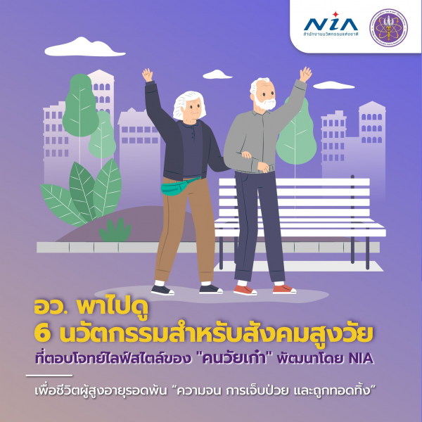 NIA จึงได้พัฒนาและสนับสนุนนวัตกรรมสำหรับผู้สูงอายุใน 6 ด้าน เพื่อช่วยรับมือกับสังคมผู้สูงอายุของไทย ลองมาดูกันว่ามีนวัตกรรมด้านใดบ้าง