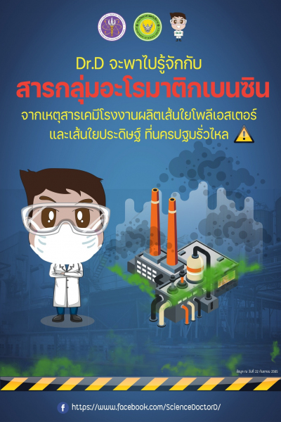 เพื่อนๆ ครับ จากข่าวสารเคมีรั่วไหล เมื่อเช้าวันนี้ ในพื้นที่ อ.นครชัยศรี จ.นครปฐม ทำให้ประชาชนในพื้นที่ได้รับกลิ่นเหม็นคล้ายสารเคมีแพร่กระจายเป็นวงกว้าง เบื้องต้นทราบว่า สารเคมีรั่วไหลออกมาจากโรงงานผลิตเส้นใยโพลีเอสเตอร์และเส้นใยประดิษฐ์ โดยเป็นสารกลุ่มอะโรมาติกเบนซิน วันนี้ Dr.D จะพาไปรู้จักกับสารตัวนี้กันครับ