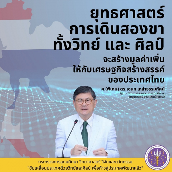 เศรษฐกิจสร้างสรรค์ จะขับเคลื่อนประเทศไทยได้ต้องใช้ทั้งวิทย์และศิลป์ควบคู่กัน ธัชชา และ ธัชวิทย์ ของ อว. สร้างปรากฏการณ์ความสำเร็จของการทำงานร่วมกัน ระหว่างนักวิชาการสายวิทย์ และ นักวิชาการสายศิลป์ เป็นประโยชน์ต่ออุตสาหกรรมท่องเที่ยว และ อุตสาหกรรมอื่นๆอีกมากมาย