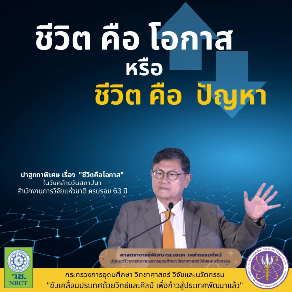 เชิญรับฟัง ปาฐกถาพิเศษ เรื่อง "ชีวิต คือ โอกาส" ในโอกาสวันคล้ายวันสถาปนา สำนักงานการวิจัยแห่งชาติ ครบรอบ 63 ปี