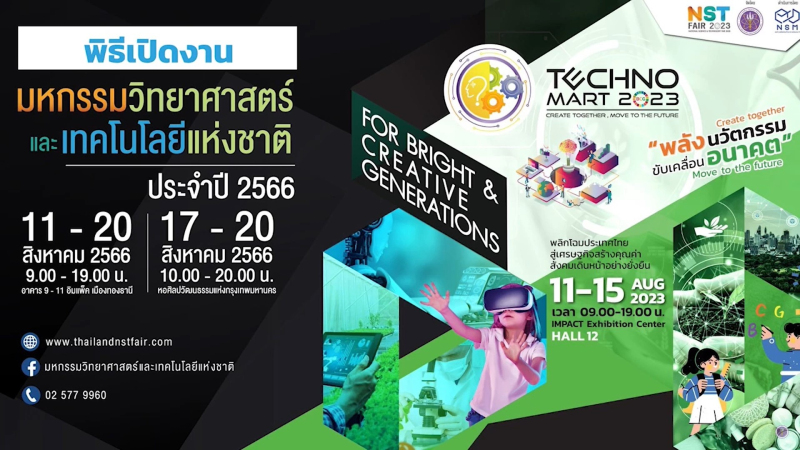 เมื่อวันที่ 11 ส.ค. ที่ศูนย์แสดงสินค้าและการประชุมอิมแพ็ค เมืองทองธานี นายดอน ปรมัตถ์วินัย รองนายกรัฐมนตรีและรัฐมนตรีว่าการกระทรวงการต่างประเทศ เป็นประธานเปิดงาน “มหกรรมวิทยาศาสตร์และเทคโนโลยีแห่งชาติ ประจำปี 2566” ภายใต้แนวคิด “For Bright and Creative Generations” และงาน “เทคโนมาร์ท 2023” โดยมี ศ.(พิเศษ) ดร.เอนก เหล่าธรรมทัศน์ รัฐมนตรีว่าการกระทรวงการอุดมศึกษา วิทยาศาสตร์ วิจัยและนวัตกรรม (อว.) ดร.บุญเกียรติ การะเวกพันธุ์ ผู้ช่วยรัฐมนตรีประจำกระทรวงการ อว. ศ.ดร.นพ.สิริฤกษ์ ทรงศิวิไล ปลัดกระทรวงการ อว. นายสัมพันธ์ เย็นสำราญ ที่ปรึกษารัฐมนตรีว่าการกระทรวงการ อว. ดร.ดนุช ตันเทอดทิตย์ เลขานุการรัฐมนตรีว่าการกระทรวงการ และ ผศ.ดร.รวิน ระวิวงศ์ ผู้อำนวยการองค์การพิพิธภัณฑ์วิทยาศาสตร์แห่งชาติ (อพวช.) เข้าร่วม