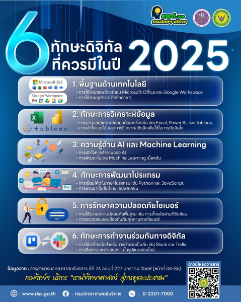 ยุคนี้ใครไม่มีทักษะดิจิทัลถือว่าตกเทรนด์ เตรียมตัวให้พร้อมรับปี 2025 กับ 6 ทักษะสำคัญที่จะทำให้คุณเป็นที่ต้องการของตลาดแรงงาน ไม่ว่าจะเป็น Microsoft 365, การวิเคราะห์ข้อมูล, AI, การเขียนโปรแกรม, ความปลอดภัยไซเบอร์ หรือการทำงานร่วมกับคนอื่น