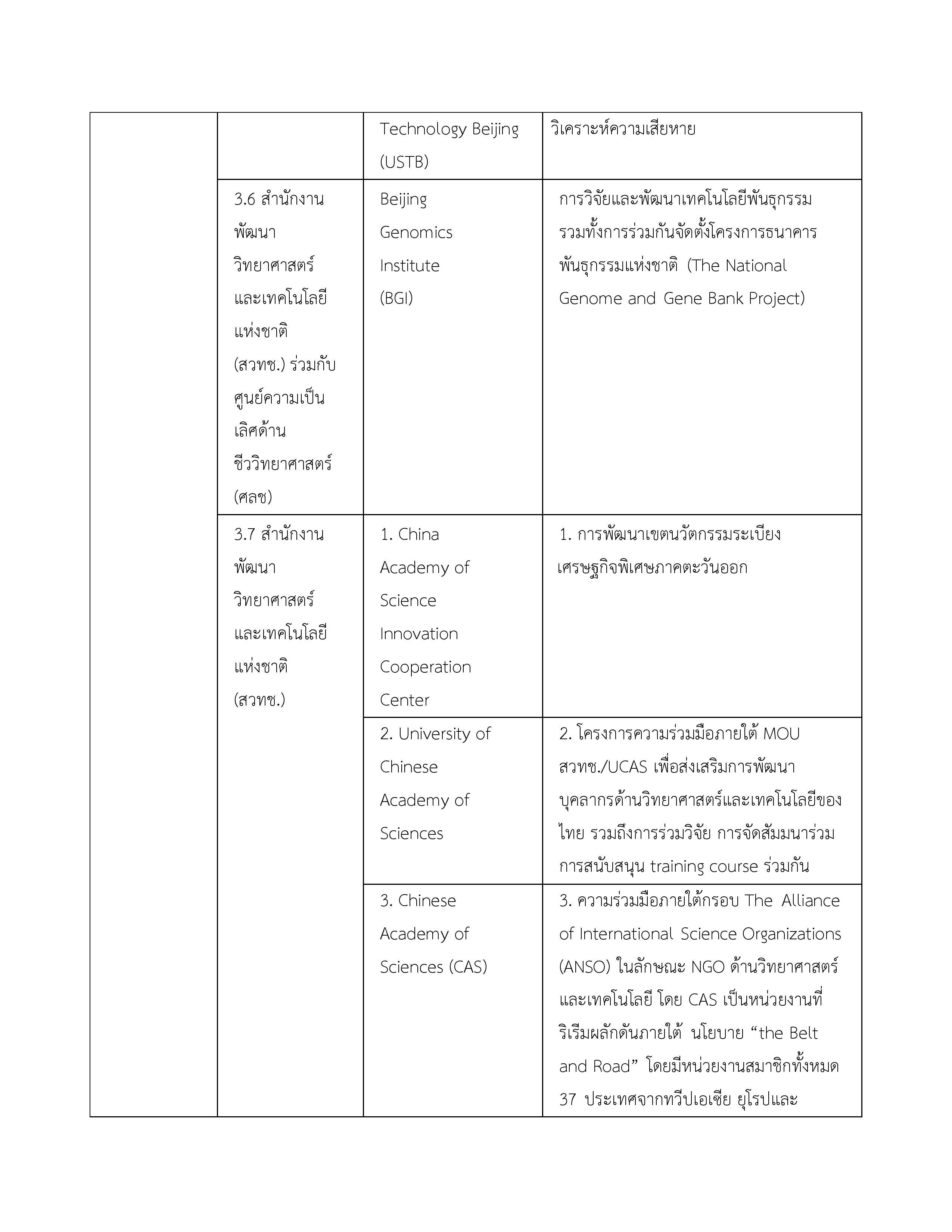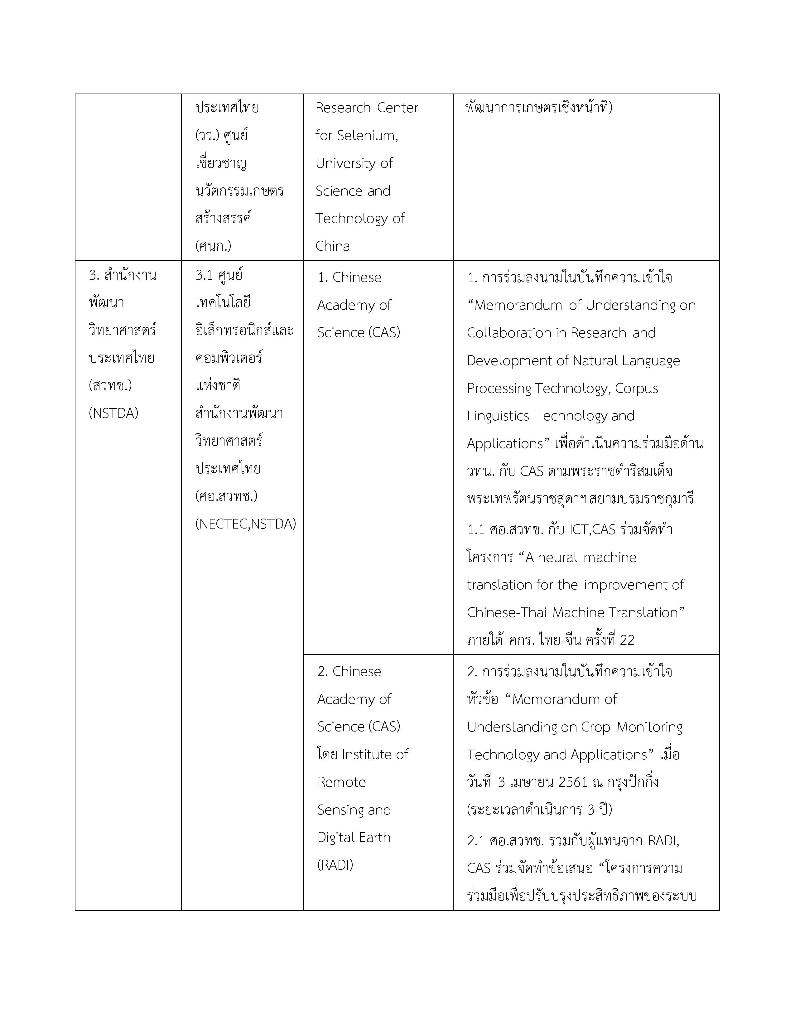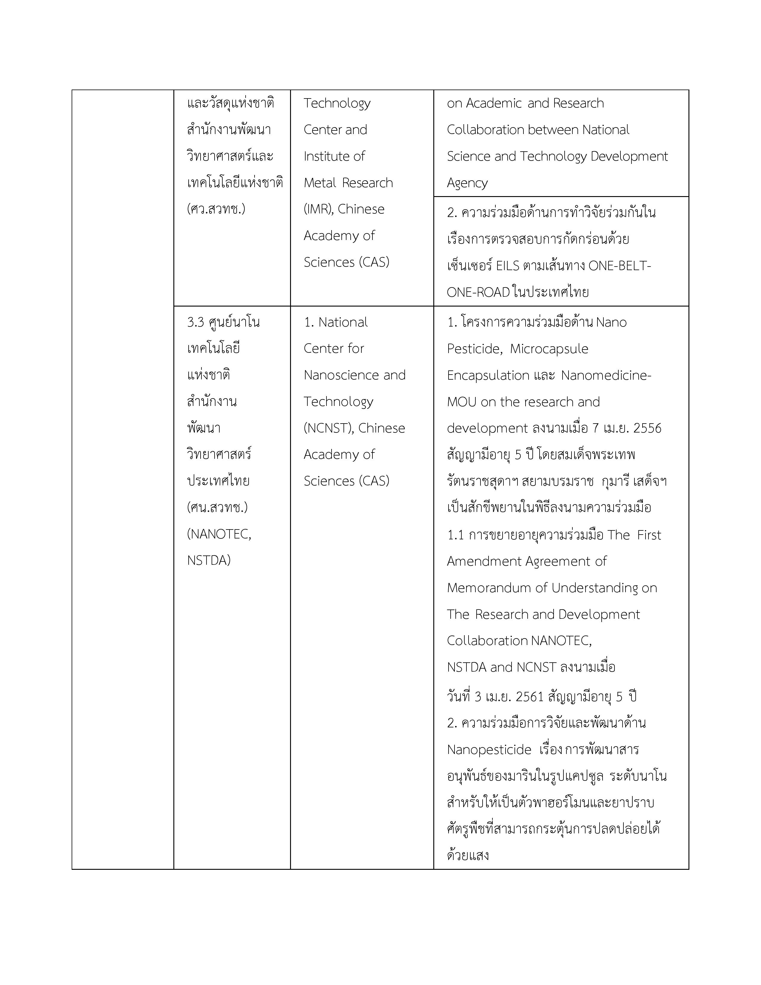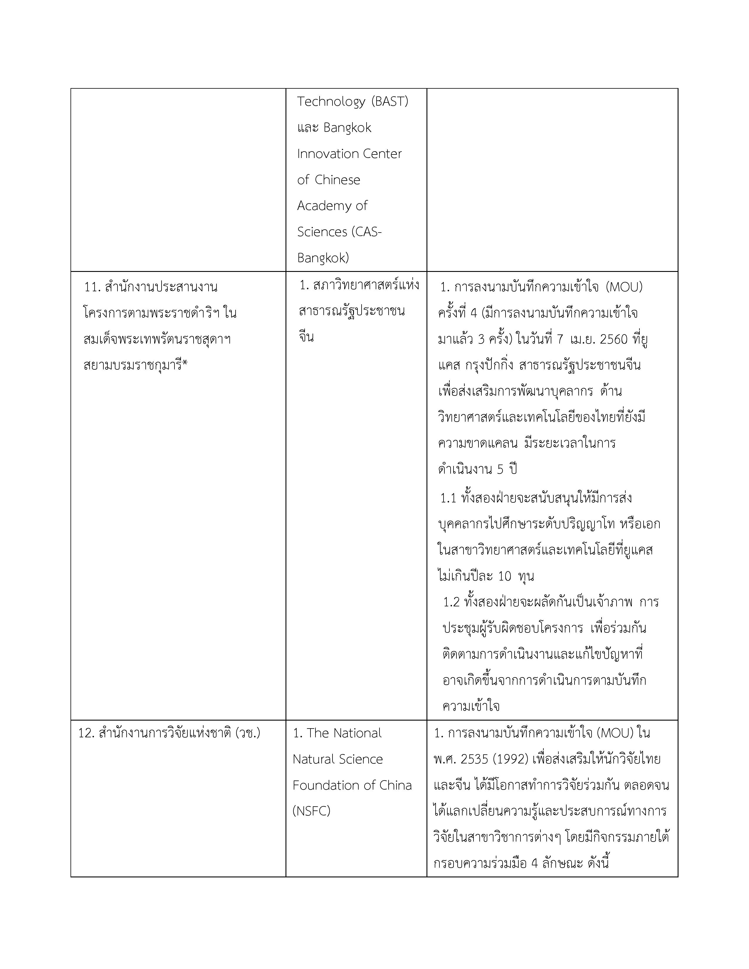 3. บันทึกความเข้าใจระหว่างกระทรวงวิทยาศาสตร์และเทคโนโลยีแห่งราชอาณาจักรไทยกับสถาบันบัณฑิตวิทยาศาสตร์จีนแห่งสาธารณรัฐประชาชนจีน 16 พฤษภาคม 2549 ไม่มี จนกว่าฝ่ายใดฝ่ายหนึ่งจะแจ้งยกเลิก