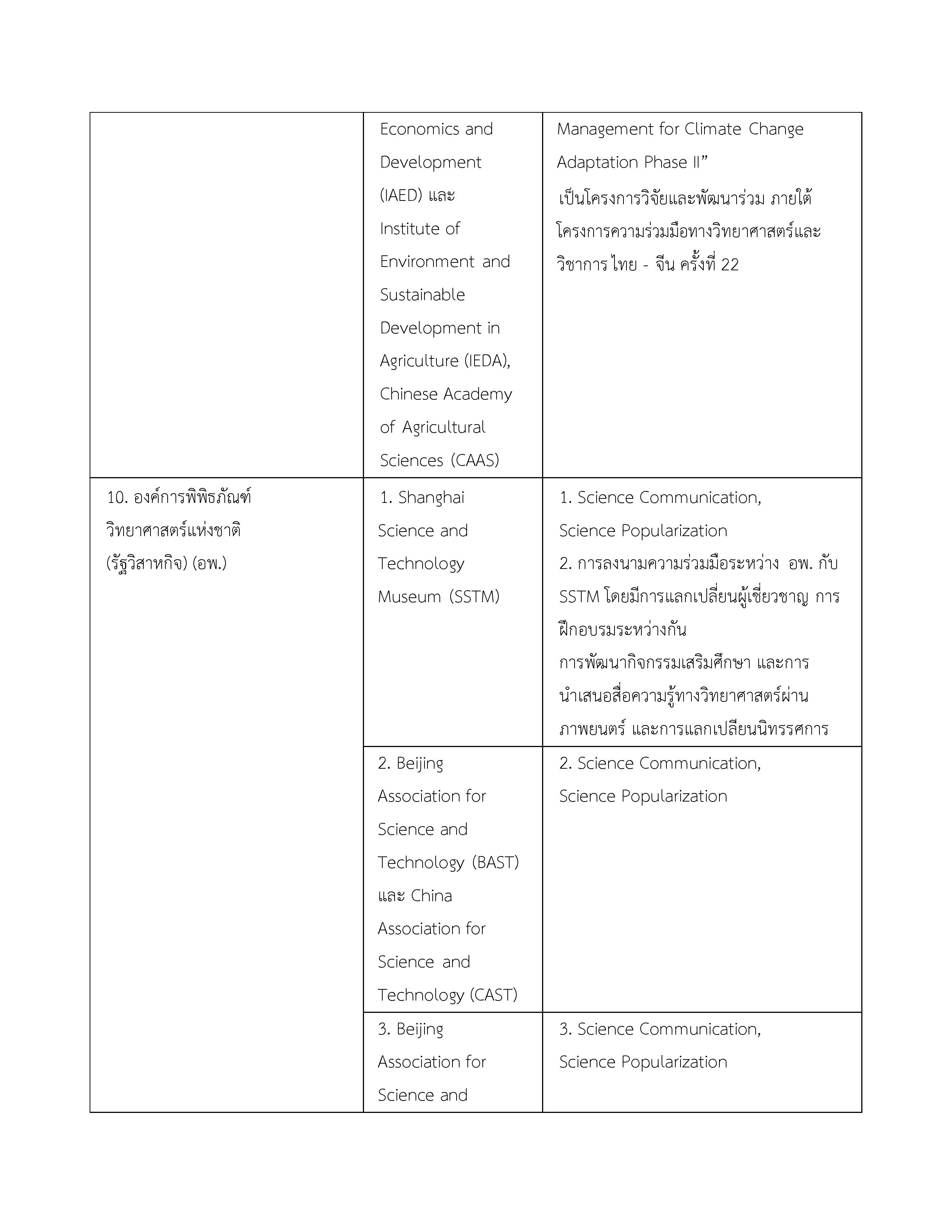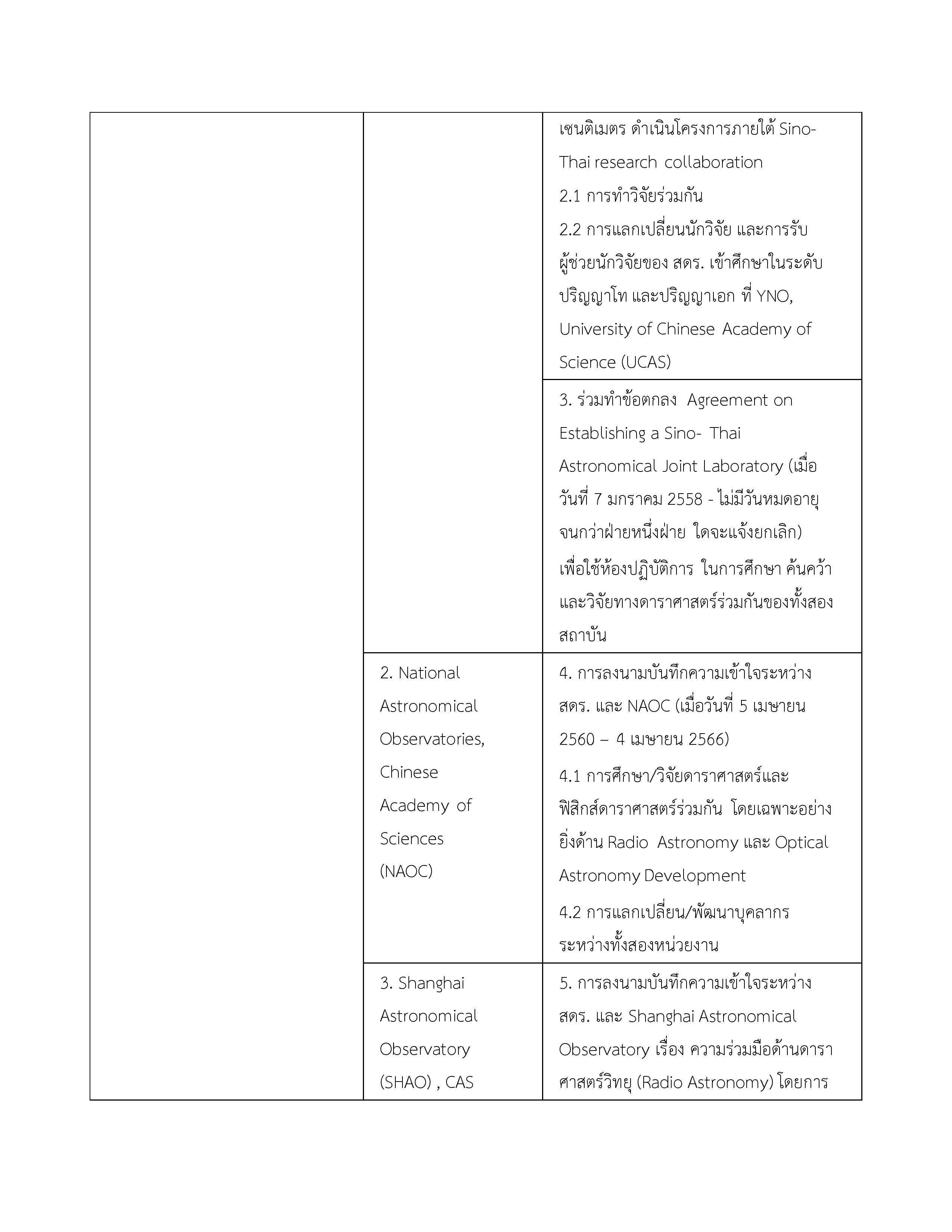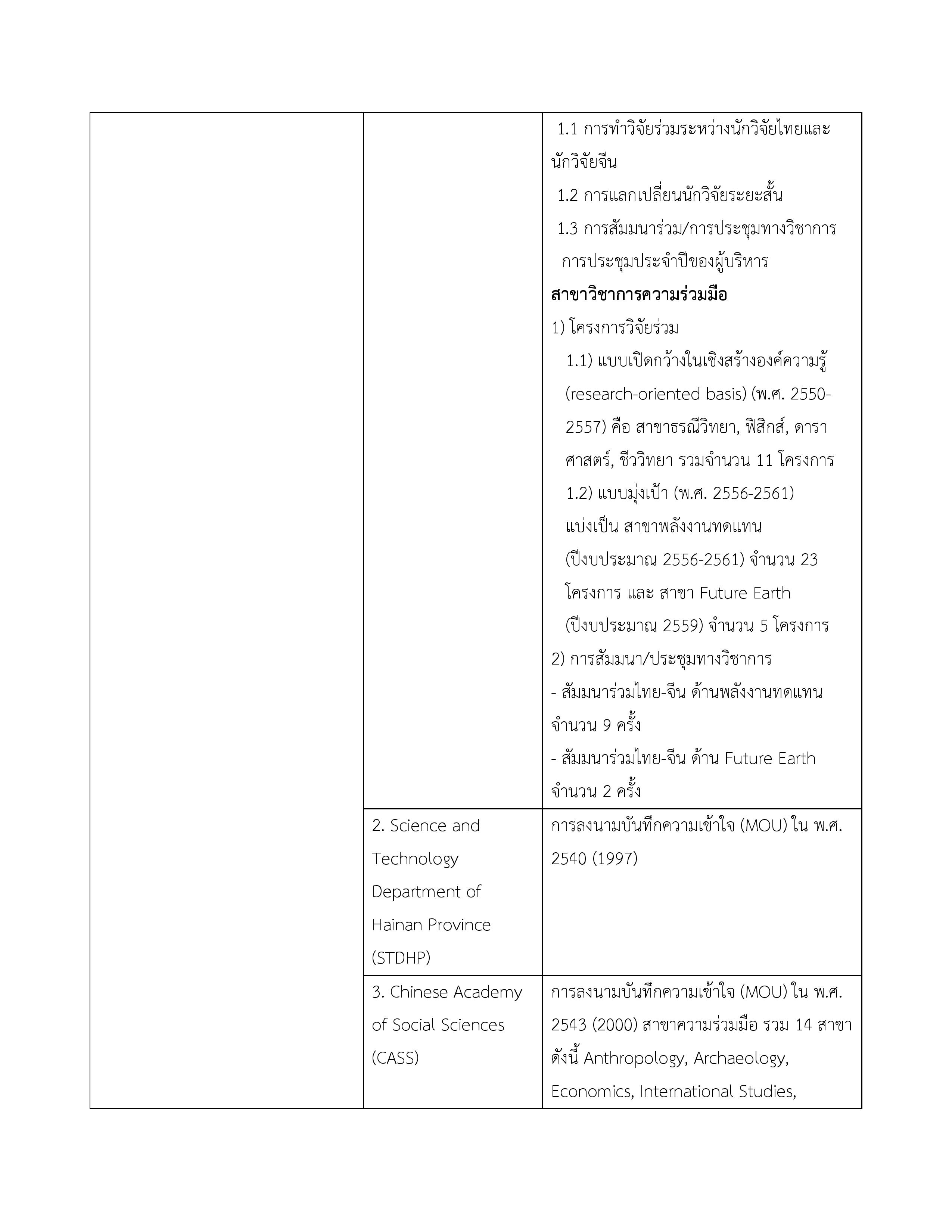 3. บันทึกความเข้าใจระหว่างกระทรวงวิทยาศาสตร์และเทคโนโลยีแห่งราชอาณาจักรไทยกับสถาบันบัณฑิตวิทยาศาสตร์จีนแห่งสาธารณรัฐประชาชนจีน 16 พฤษภาคม 2549 ไม่มี จนกว่าฝ่ายใดฝ่ายหนึ่งจะแจ้งยกเลิก