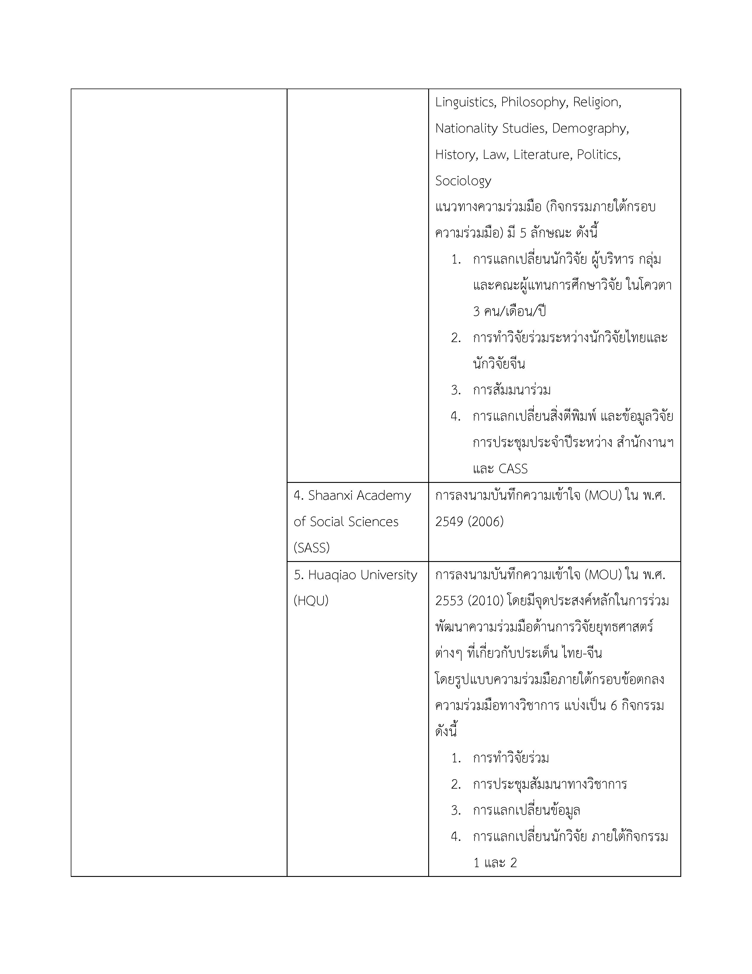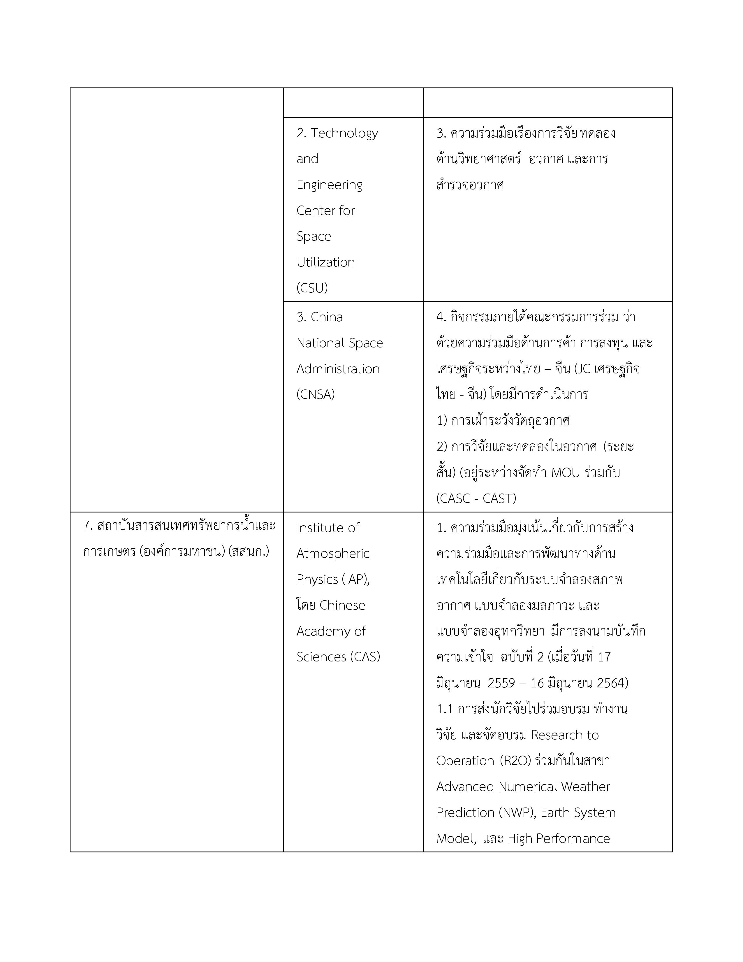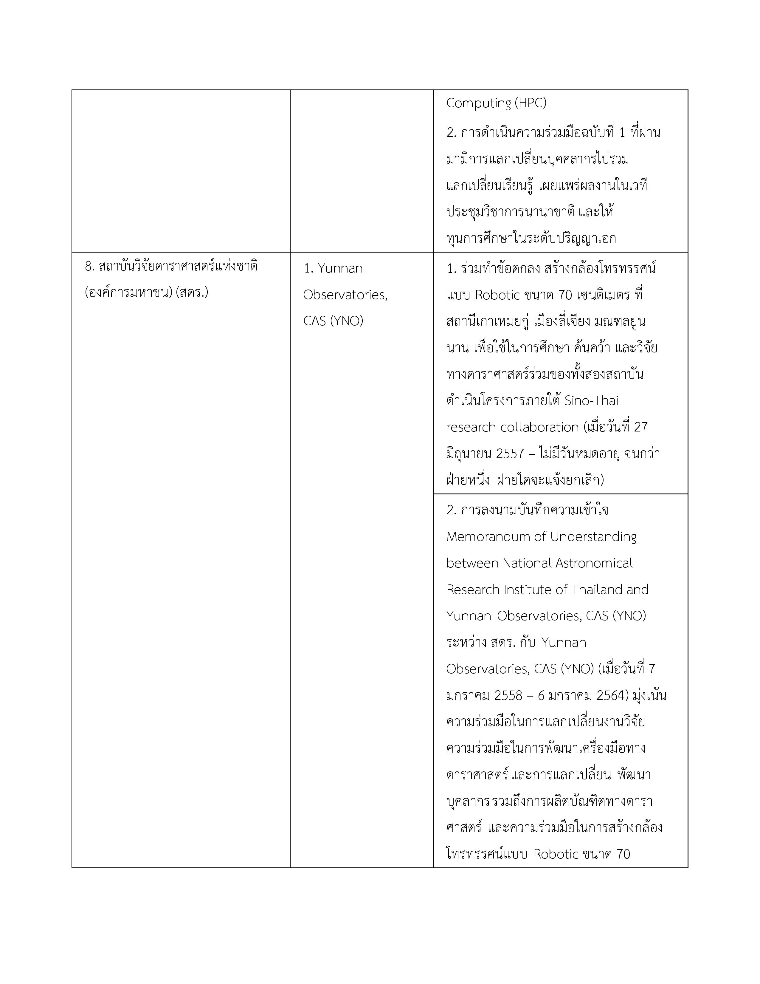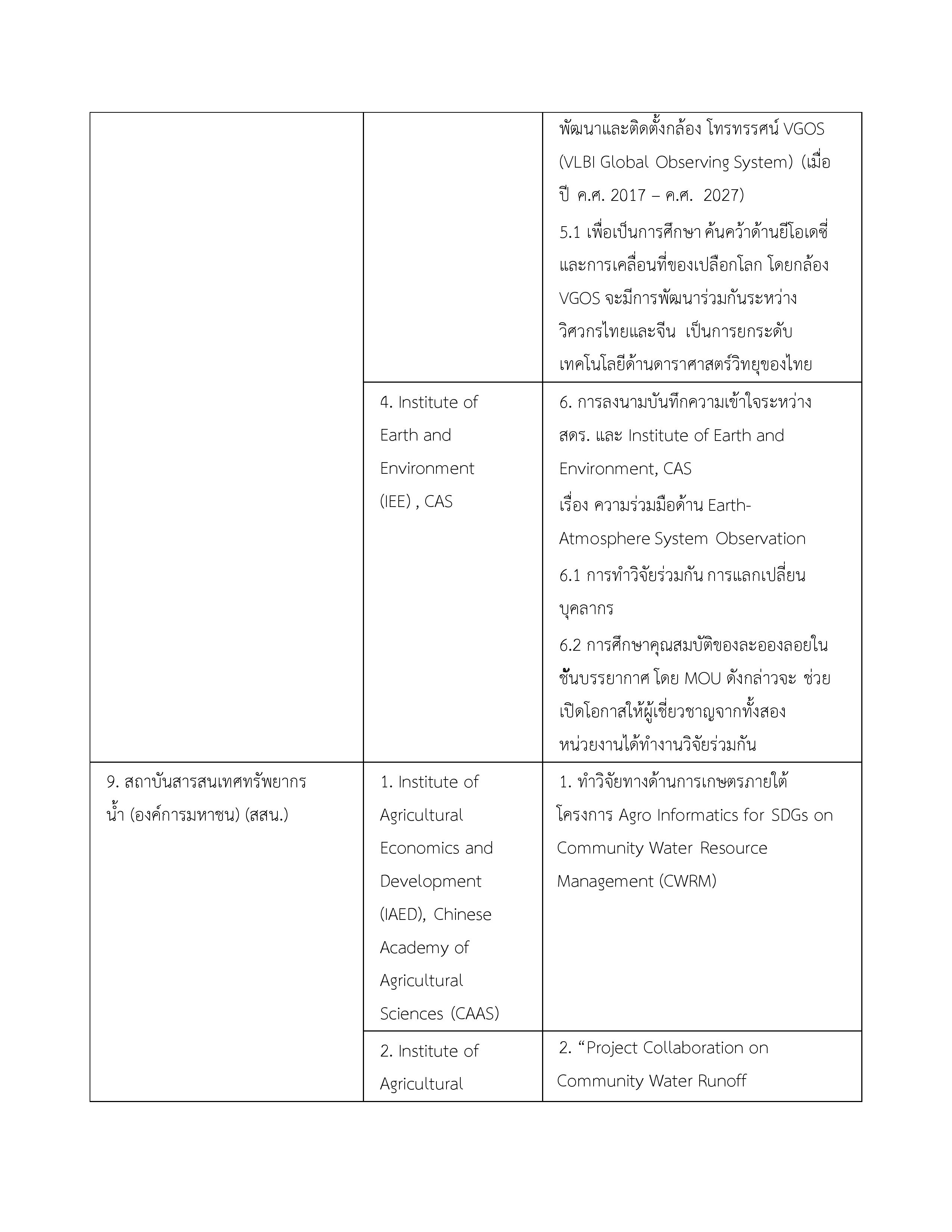 3. บันทึกความเข้าใจระหว่างกระทรวงวิทยาศาสตร์และเทคโนโลยีแห่งราชอาณาจักรไทยกับสถาบันบัณฑิตวิทยาศาสตร์จีนแห่งสาธารณรัฐประชาชนจีน 16 พฤษภาคม 2549 ไม่มี จนกว่าฝ่ายใดฝ่ายหนึ่งจะแจ้งยกเลิก