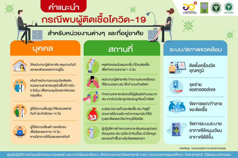 คำแนะนำ กรณีพบผู้ติดเชื้อโควิด-19 สำหรับหน่วยงานต่าง ๆ และที่อยู่อาศัย
