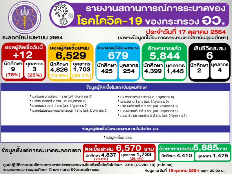(ข้อมูล ณ 16 ตุลาคม 2564 เวลา 20.00)