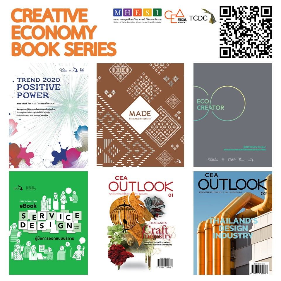 6. CEA OUTLOOK จับกระแสอนาคตเศรษฐกิจสร้างสรรค์ สาขางานออกแบบ : นำเสนอข้อมูลสถานภาพและศักยภาพอุตสาหรรมการออกแบบของประเทศไทย การพัฒนาวิชาชีพการออกแบบ ซึ่งมีรากฐานมาจากกลุ่มวิชาชีพ “ช่าง” และกลุ่มสาขาวิชาชีพการออกแบบสาขาย่อย รวมถึงตัวอย่างการนำการออกแบบมาใช้ในการพัฒนากรุงเทพมหานครดาวน์โหลด E-book ได้ที่: https://web.tcdc.or.th/th/Publication/Detail/CEA-OUTLOOK-Creative-Economy-Prospects-July-December-2019