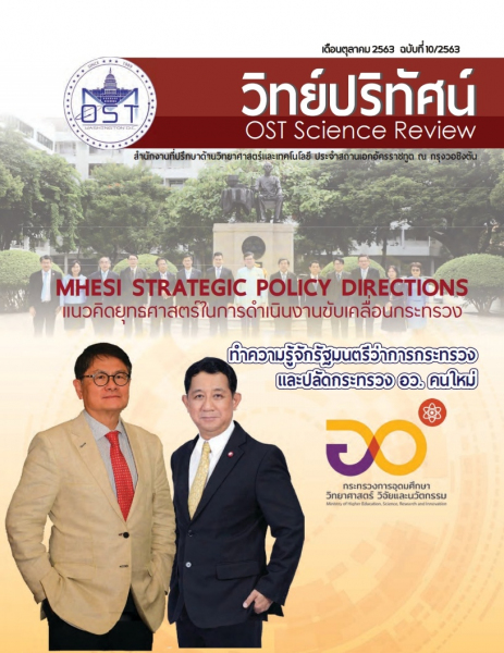 พบกันใหม่ในปีงบประมาณ 2564 วิทย์ปริทัศน์ ฉบับแนะนำผู้บริหารสูงสุดของกระทรวง อว. คือ ท่านรัฐมนตรีว่าการฯ ศาสตราจารย์ ดร.เอนก เหล่าธรรมทัศน์ และ ท่านปลัด ศาสตราจารย์ ดร.นายแพทย์สิริฤกษ์ ทรงศิวิไล ซึ่งเพิ่งเข้ารับหน้าที่ปลัดกระทรวงฯ เมื่อวันที่ 1 ตุลาคม 2563 ที่ผ่านมา ฉบับนี้ ทีมงานจึงจัดเป็นฉบับปฐมฤกษ์ ในการนำเสนอแนวคิดยุทธศาสตร์ในการดำเนินงานขับเคลื่อนของกระทรวง อว. ที่สอดคล้องกับวิสัยทัศน์ของกระทรวงฯ ที่ว่า กระทรวง อว. คือ หน่วยงานที่จะนำความรู้และพลังปัญญาไปช่วยประชาชนสมดั่งกับคำว่า กระทรวงแห่งปัญญา กระทรวงแห่งโอกาส กระทรวงแห่งอนาคต ลองมาดูกันว่าท่านรัฐมนตรีและท่านปลัดกระทรวงฯได้ให้เสาหลักและทิศทางใดในการทำงานของกระทรวง อว. ซึ่งเป็นกระทรวงขุมพลังคลังสมองของชาติ ให้เป็นกลไกหลักให้ประเทศไทยก้าวไปสู่ยุค 4.0 ให้จงได้