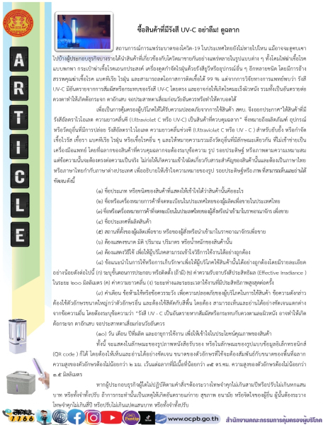 - ดาวน์โหลดเอกสาร เรื่อง ซื้อสินค้าที่มีรังสี UV-C อย่าลืม! ดูฉลาก