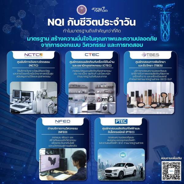 เบื้องหลังความมั่นใจของผู้บริโภค คือระบบ NQI (National Quality Infrastructure) หรือ ‘โครงสร้างพื้นฐานทางคุณภาพของประเทศ’ ซึ่งเป็นกลไกสำคัญที่ผลักดันให้ผลิตภัณฑ์ เทคโนโลยี และนวัตกรรมของไทยมีคุณภาพได้มาตรฐาน ปลอดภัย และพร้อมก้าวสู่การแข่งขันในระดับสากล