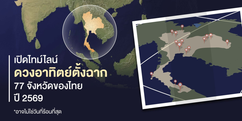 เปิดไทม์ไลน์วัน-เวลาดวงอาทิตย์ตั้งฉาก 77 จังหวัดของประเทศไทย ทั้ง 2 ครั้งในปี 2569