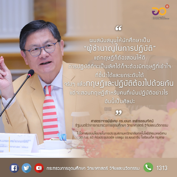 ผมสนับสนุนให้นักศึกษาเป็น ผู้ชำนาญในการปฏิบัติ แต่ทฤษฎีก็ต้องสอนให้ดี การปฏิบัติที่จะเป็นเลิศได้ก็จะต้องมึทฤษฎีที่เข้าใจ ที่ชี้นำได้และยกระดับได้ จริงๆแล้ว ทฤษฎีและปฏิบัติต้องไปด้วยกัน แต่จะสอนทฤษฎีสำหรับคนที่เน้นปฏิบัติอย่างไรอันนี้เป็นศิลปะ