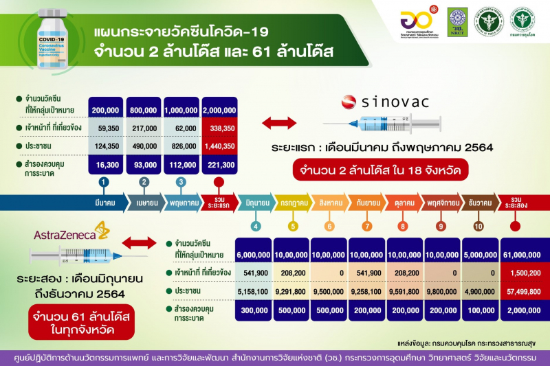 แผนกระจายวัคซีนโควิด 19 จำนวน 2 ล้านโด๊ส และ 61 ล้านโด๊ส