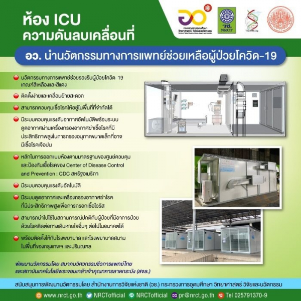 สำนักงานการวิจัยแห่งชาติ (วช.) กระทรวงการอุดมศึกษา วิทยาศาสตร์ วิจัยและนวัตกรรม นำ “ห้อง ICU ความดันลบเคลื่อนที่” นวัตกรรมทางการแพทย์ช่วยเหลือผู้ป่วยโควิด-19