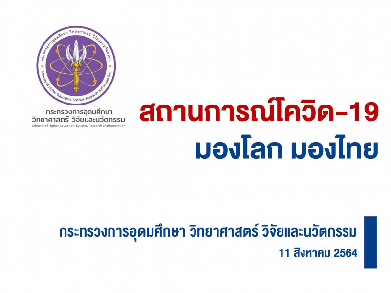 (11 สิงหาคม 2564) ศาสตราจารย์ ดร. นายแพทย์สิริฤกษ์ ทรงศิวิไล ปลัดกระทรวงการอุดมศึกษา วิทยาศาสตร์ วิจัยและนวัตกรรม (อว.) เผยว่า กระทรวง อว. ได้ติดตามสถานการณ์การระบาดของโรคโควิด-19 ทั่วโลก ซึ่งในขณะนี้ยังมีการติดเชื้อเพิ่มมากขึ้นอย่างต่อเนื่อง ยังเป็นแนวโน้มขาขึ้น โดยมีจำนวนผู้ติดเชื้อทั่วโลกเพิ่มขึ้น 19% เมื่อเทียบกับเมื่อสองสัปดาห์ก่อน