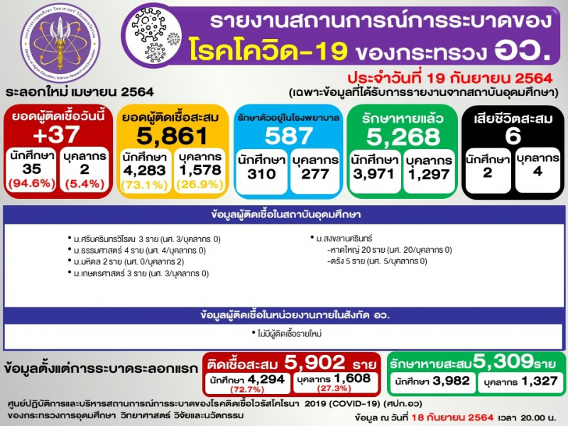 (ข้อมูล ณ 18 กันยายน 2564 เวลา 20.00)