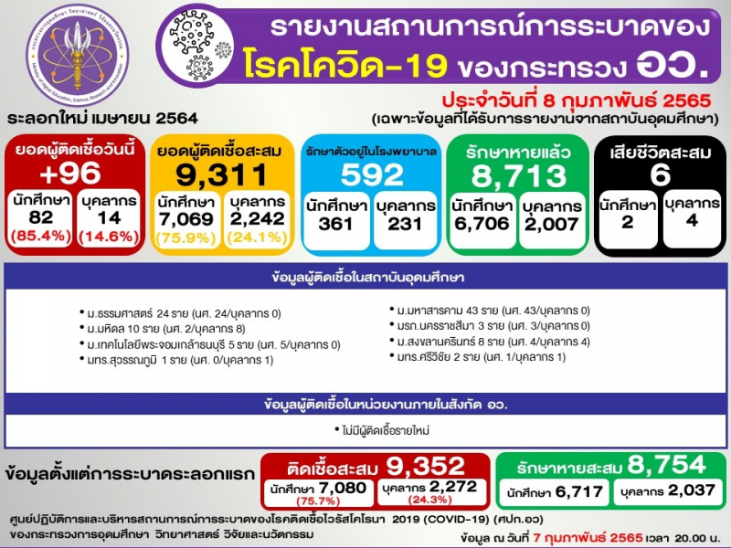 (ข้อมูล ณ 7 กุมภาพันธ์ 2565 เวลา 20.00)