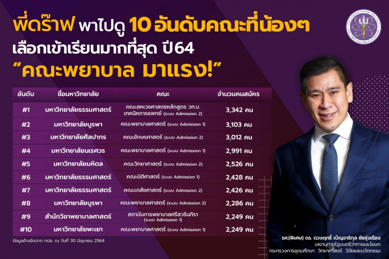 10 อันดับ คณะที่น้องๆ เลือกเข้าเรียนมากที่สุด ปี 64 บอกเลยว่าปีนี้คณะพยาบาลมาแรง จะมีคณะอะไรจากมหาวิทยาลัยไหนบ้าง
