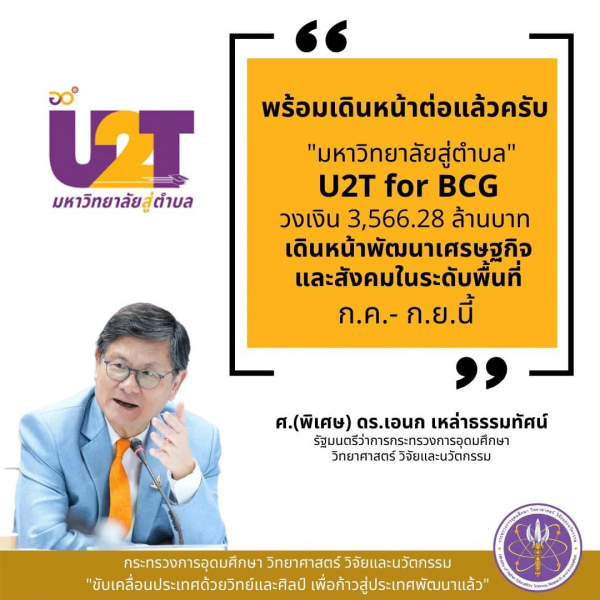 เดินหน้าต่อกันครับกับ "โครงการมหาวิทยาลัยสู่ตำบล U2T for BCG”